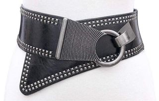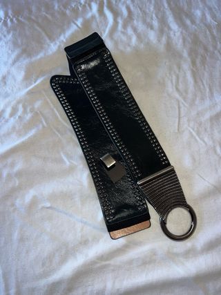 Cinturón negro y beige con anilla