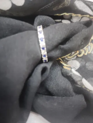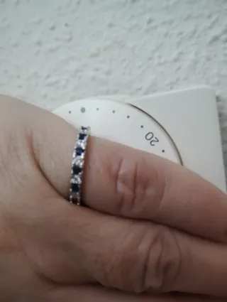 Elegante anillo de plata con un diseño de circonitas y zafiro azul. - Detalles en circonitas. - Gema central de zafiro azul.