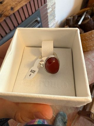 Anillo mystique plateado con gema granate, talla 6. Comprado hace 15 días y no se ha sacado de la caja, la devolución cuesta más que el anillo