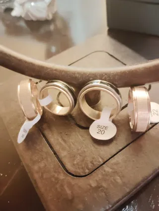 Conjunto de 20 anillos de acero inoxidable en diferentes tamaños. Lote de anillos de acero inoxidable Talla desde 17 hasta el 21 Escríbeme si te interesa por unidad para mostrar los modelos y tallas Por lote no se puede elegir vienen varias tamaños y diseños Unidad 2€ Lote 20 anillos 15€