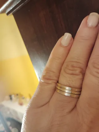 Anillo de plata 925 con un diseño elegante y moderno. Su acabado pulido le da un brillo especial. - Material: Plata de ley 925. - Diseño con tres bandas. - Acabado brillante.