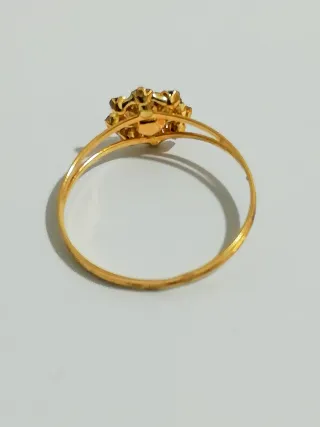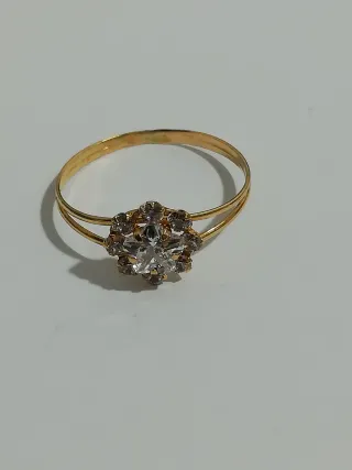 Elegante anillo de oro de 18 quilates con un diseño de flor adornado con pequeñas circonitas. - Material: Oro 18k - Diseño: Flor con circonitas