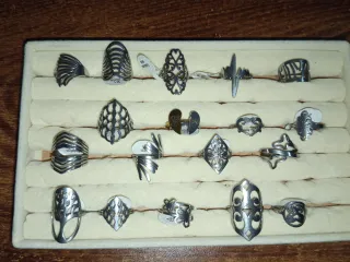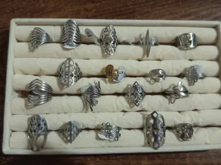 Conjunto de anillos de acero inoxidable. Los de color plata son 20 anillos por 10€ Los Tornasol y negro son 13 anillos por 10€ los dorados son 20 anillos por 13€ Los de figuras son 20 anillos por 15€ Si los quieres variados 20 anillos por 15€ - Diseños variados. - Acabado brillante.