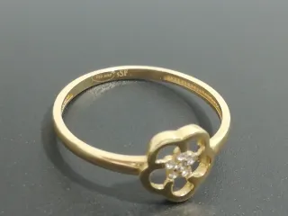 Elegante anillo de oro de 18 quilates adornado con circonitas. - Diseño floral con circonita central. - Detalles de circonitas alrededor.