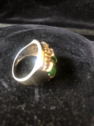 Anillo Plata Oro con Piedras Verdes