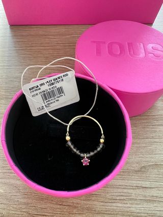 Conjunto de joyería de la marca Tous, que incluye una pulsera y un anillo. - Pulsera con diseño de ositos. - Anillo con detalle de ositos y piedras. (talla 10)