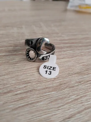 Anillo con diseño inspirado en herramientas, con el logo de Harley Davidson. - Diseño de llave inglesa. - Grabado Harley Davidson.