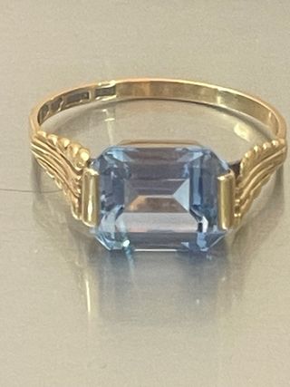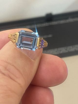 Anillo Oro 18K Oro Amarillo Talla dedo 18/58 (Se ajusta talla) Peso total 2.50 Gramos Montada Con Una Aguamarina Natural Forma Esmeralda Quilates 2.00 Ct Color Azul cielo transparente Es un Anillo precioso La aguamarina Con unos destellos increíbles, y un contraste perfecto Con el oro amarillo Tener en cuenta la pureza de ella aparte del oro Un aguamarina De este quilate en joyeria vale mucho dinero Se envía en caja de lujo Muy bien Embalado ;Ver Fotos Gracias✨💫
