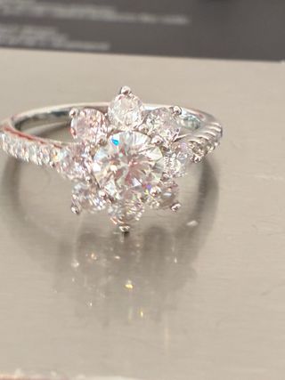 Precioso Anillo En plata Rodiada Talla 17/57 (Se Ajusta talla ) Peso total 3.40 gramos Montada Con un diamante Moissanita Quilates 2.00 Ct Grado y color VVS1/D Medidas 6.8 mm Certificación GRA Es un anillo muy bonito con unos destellos increíbles Ver fotos se envía en caja de lujo y certificado GRACIAS M.V✨💫