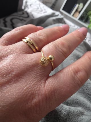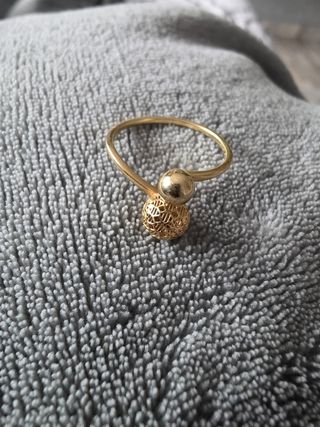 Precioso anillo de oro de 18 quilates, con diseño elegante y moderno. Es ajustable, por lo que se adapta a diferentes dedos. - Diseño único con dos esferas. - Acabado brillante y delicado. - Ideal para cualquier ocasión.
