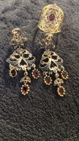 Conjunto Anillo y Pendientes Vintage Oro Púrpura