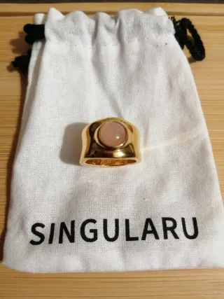 Anillo Dorado con Piedra Rosa Singularu