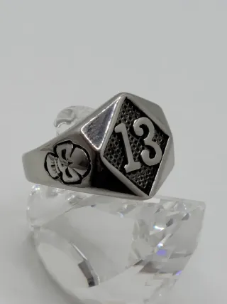 Anillo con un diseño llamativo. Presenta el número 13 en relieve sobre un fondo texturizado - Diseño con el número 13. - Detalle de calavera. - Acero quirúrgico. - Consultar tallas disponibles.