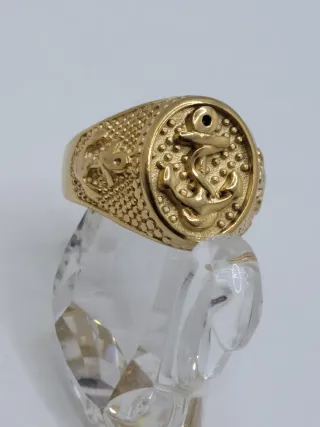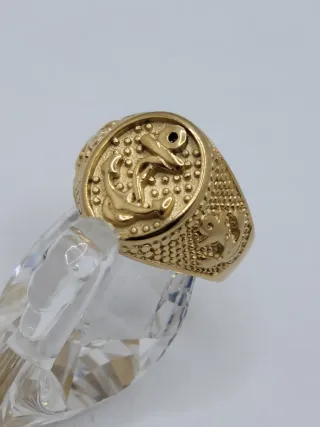 Precioso anillo de estilo marinero, con un diseño elegante y sofisticado. Es una pieza única y llamativa. - Diseño de ancla y detalles grabados. - Acabado dorado brillante. - Material resistente y duradero. - Acero quirúrgico chapado en oro. - Consultar tallas disponibles.