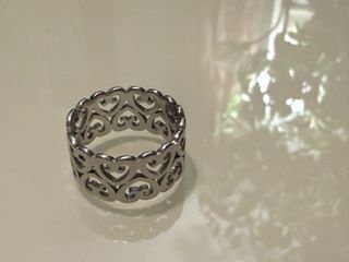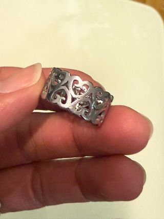 Anillo de plata con un delicado diseño calado de corazones entrelazados. - Diseño de corazones. - Acabado plateado.