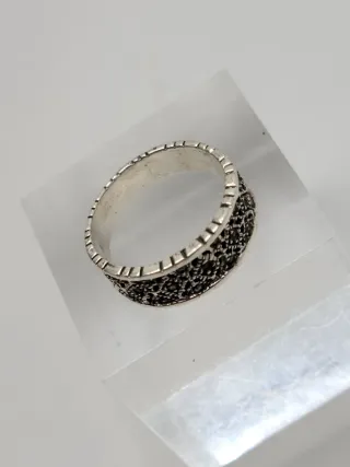 Anillo de plata con un diseño intrincado y detallado. - Diseño con motivos florales y ornamentales. - Acabado metálico brillante.
