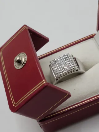 Material de alta calidad: Fabricado en plata de primera ley 925 (con el sello correspondiente), lo que garantiza durabilidad y autenticidad. Diseño elegante: Estilo moderno y llamativo, ideal para ocasiones especiales o para añadir un toque de distinción a tu look diario. Es una pieza ancha y maciza. Brillo intenso: Adornado con múltiples circonitas engastadas que capturan la luz y brillan como diamantes. Ideal para regalo: Se entrega listo para regalar en su estuche (como se ve en la foto). Detalles adicionales: Condición: Nuevo.