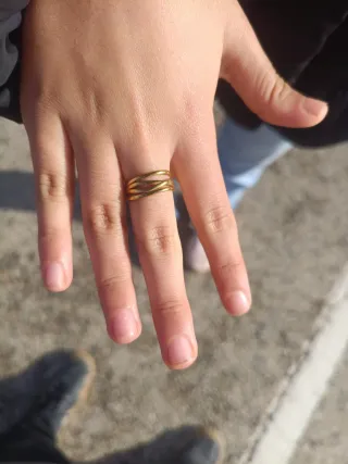 Anillo de acero inoxidable con un diseño entrelazado. - Material: Acero inoxidable - Acabado: Dorado