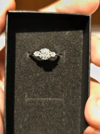 Elegante anillo con moissanita central y circonitas laterales - Diseño delicado y brillante. - Montura en plata s925
