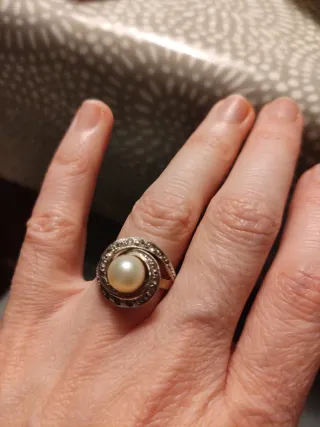 Anillo vintage de plata y perla
