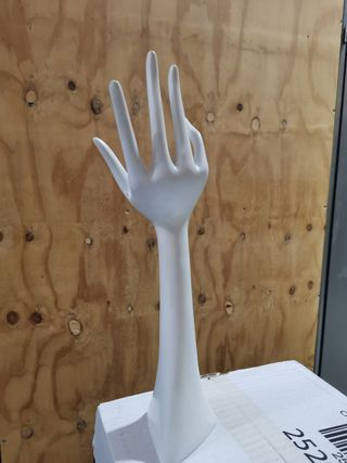 Este joyero es perfecto para organizar tus anillos y otras joyas pequeñas. Su diseño elegante lo hace un accesorio decorativo. - Material: Plástico - Color: Blanco - Forma: Mano - Ideal para exhibir anillos.
