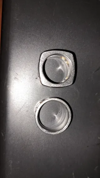 Conjunto de anillos de acero con acabado brillante. - Signos de uso evidentes. Ver fotos. - El color plata es Viceroy. El plata y negro es Fossil - Diseño moderno y elegante. - Detalles calados. - aprox. Talla 15 o 16 española.