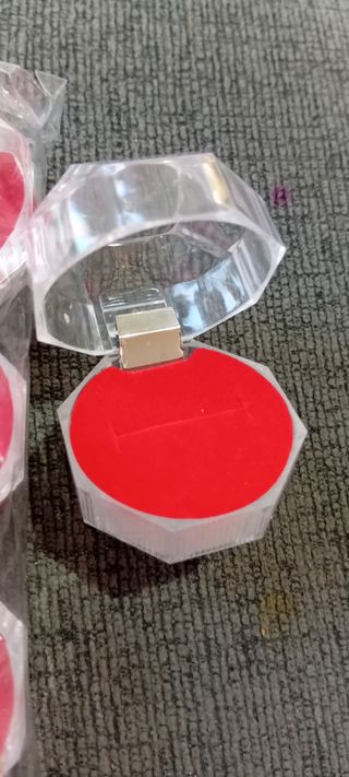 Se venden 20 cajas acrílicas para anillos. Son transparentes con un interior rojo. Ideales para guardar y presentar tus anillos. Nuevos todos a estrenar - Perfectas para joyería. - Material acrílico resistente. - Diseño elegante y sofisticado.