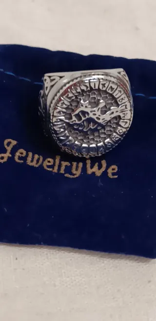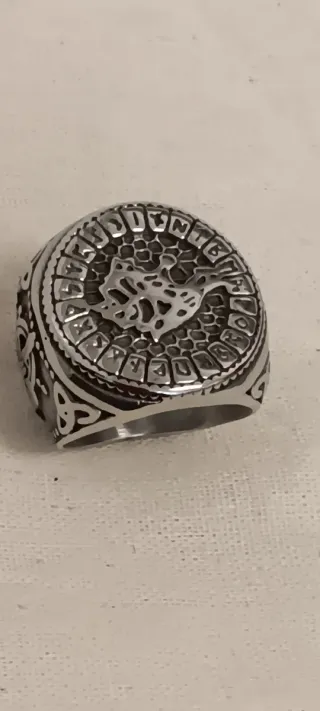 Anillo de acero inoxidable con diseño celta. Talla 13 Nuevo - Material: Acero inoxidable 316L. - Diseño: Motivos celtas grabados.