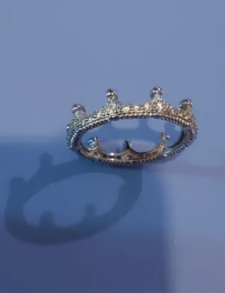 Anillo estilo corona de Pandora con un detalle central azul. Se entrega con su caja original. Talla 50 - Diseño de corona. - Gema central azul. - Incluye caja.