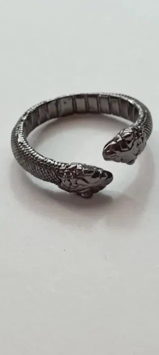 Anillo con diseño de serpiente de dos cabezas. Su tamaño es ajustable para adaptarse cómodamente. Talla 17 - Diseño detallado de escamas. - Acabado metálico.