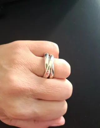 Anillo de plata 925 con un diseño entrelazado. - Material: Plata de ley 925. - Diseño: Dos bandas entrelazadas.