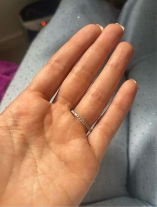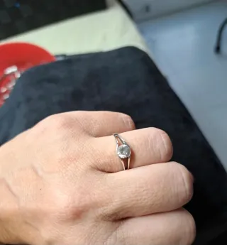 Precioso anillo de compromiso de oro blanco. Es delicado y luce impecable. - Anillo de oro blanco. - Diseño minimalista con una piedra central. Comprado en enero, en la segunda foto podeis ver su precio lo que costo