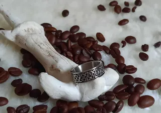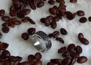 Anillo de acero quirúrgico 316L con motivos vikingos. Excepcional acabado en detalles y excelente pulido.