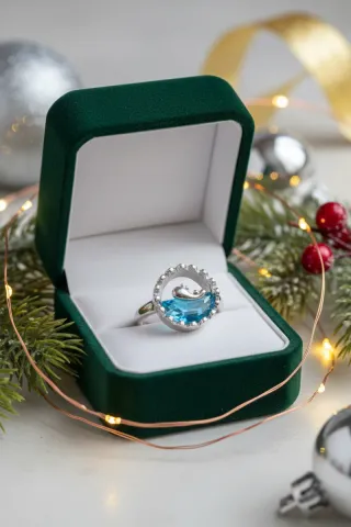 Elegante anillo con un diseño floral adornado con piedras azules y detalles plateados. Su tamaño es ajustable para adaptarse cómodamente a cualquier dedo. - Diseño de flores. - Detalles en pedrería.