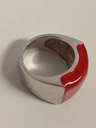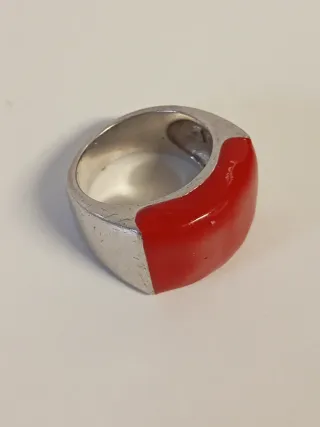 Anillo de plata con un llamativo detalle en color rojo. - Diseño moderno y elegante. - Material: Plata.