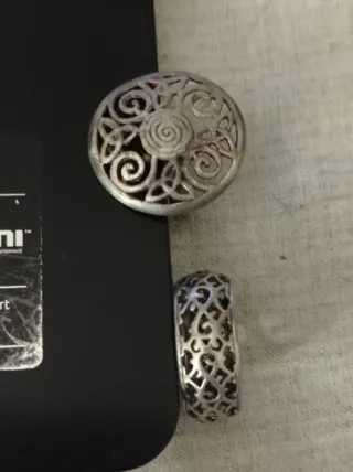 Conjunto de dos anillos con un diseño intrincado y elegante. - Elaborados en plata. - Presentan un patrón de espirales y nudos celtas. - El tamaño de cada anillo es de 19 mm. No quedo en persona
