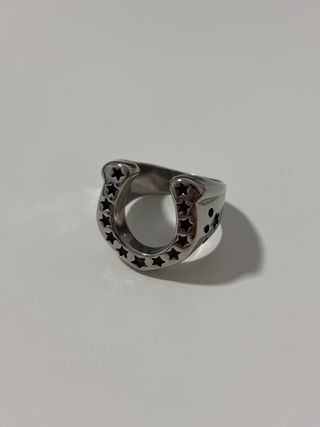 Anillo con diseño de herradura y estrellas. - Acabado plateado. - Detalles de estrellas caladas.