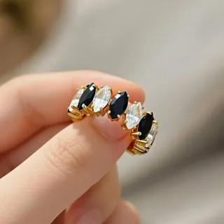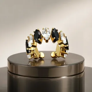 Elegante anillo ajustable con un diseño inspirado en el eclipse. Su acabado chapado en oro de 18 quilates le da un toque de lujo. - Diseño con piedras en blanco y negro. - Montura dorada. - Estilo abierto y moderno.