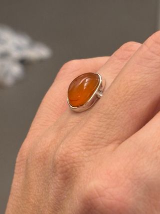 anillo de plata con piedra ambar hecho a mano por una artesana