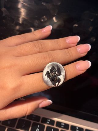 anillo grande y llamativo original tous de plata y Piedras ònix.