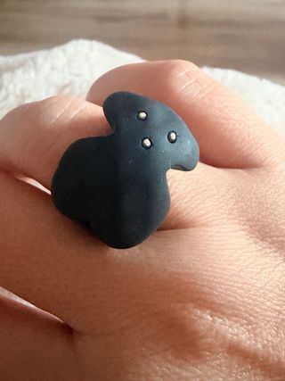 Anillo Tous auténtico en color negro. Un diseño muy bonito. - Diseño de oso. - Detalles plateados en ojos y nariz.