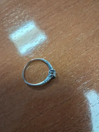 Solitario de oro blanco de 18kt con circonitas. Talla 15,5 y peso 1,87g