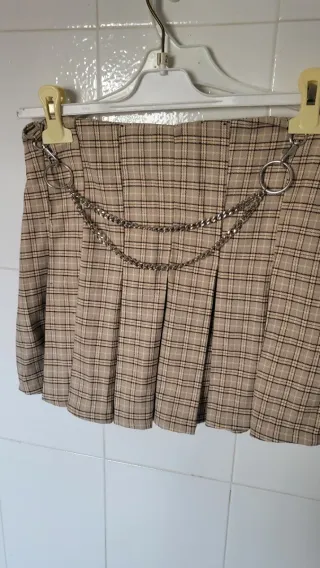 Minifalda de cuadros con detalle de cadena. - Diseño plisado. - Cadena metálica con anillas.