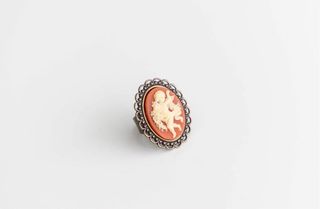 Anillos de mujer de estilos variados de la talla 13. 1- Camafeo sobre base color coral montado en metal color oro viejo. 2- Pieza de hueso y asta. 3- Cristal de Murano.
