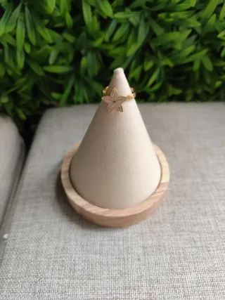 Anillo con un diseño delicado de estrella marina. - Banda del anillo en tono dorado. - Detalle de estrella marina blanca con contorno dorado.
