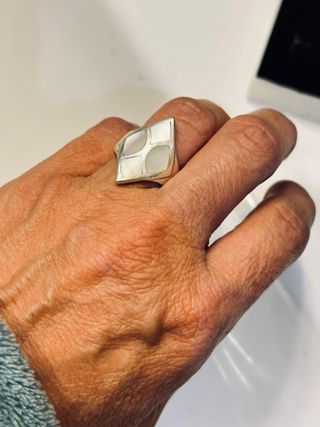 Elegante anillo con diseño moderno. - Elaborado en plata. - Incrustaciones de nácar.