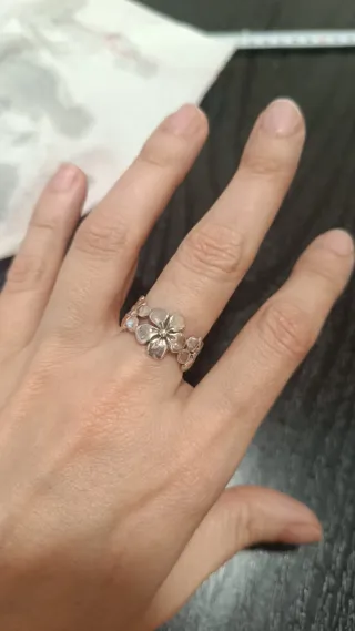 Anillo de la marca Pandora con un diseño elegante. - Color principal plateado. - Detalle en tono rosa. - Le quedan 28 días para cambiar la talla del anillo .