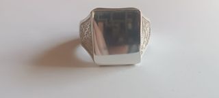 sello para grabar nombre,esta el n23.5 y pesa 16.8 gramos es macizo 1.7 x 1.5 mide la cabeza Elegante anillo de sello en plata con un diseño grabado en uno de sus laterales. - Material: Plata. - Diseño lateral grabado.