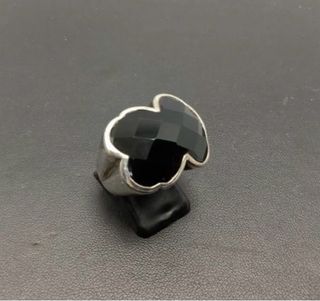 Anillo Tous con piedra de ónix. - Diseño elegante. - Montura de plata. Talla 13,5 - 16.9mm