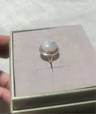 Anillo de plata y con piedra luna. - Diseño elegante y minimalista. - Ideal para complementar cualquier atuendo.